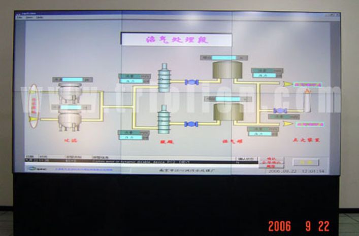 南京污水處理監控中心DLP拼接電視墻大屏幕顯示系統是由“北京彩訊科技股份有限公司”陳建,項目參數:TRM6067拼接單元 6臺,TMC2108S2處理器 1臺 ,1024*768分辨率,滿足了指揮監控的要求,是北京彩訊在企業應用的工程案例。