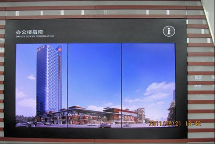 此次工程為北京雙旗世紀(jì)科技有限公司為上海海泰房地產(chǎn)(集團(tuán))有限公司辦公大樓安裝1×3液晶拼接墻,用于對(duì)海泰地產(chǎn)企業(yè)文化的展示和對(duì)公司內(nèi)部信息智能發(fā)布。 根據(jù)海泰地產(chǎn)的具體規(guī)劃,結(jié)合現(xiàn)場(chǎng)的安裝環(huán)境和布局,海泰地產(chǎn)選用了夏普60寸的專業(yè)顯示器PN-E601共3臺(tái),組合成1×3大幅面液晶拼接墻。夏普PN-E601專業(yè)顯示器最大的特點(diǎn)是采用窄邊框設(shè)計(jì),它不但可以縱橫自由放置,還能做縱向1×3拼接,拼接成畫面尺寸達(dá)103英寸,拼接后的分辨率最大可以達(dá)到3360×1920像素,且畫面完美清晰。它采用夏普?qǐng)泄S的10代線ASV液晶面板,單屏分辨率為1920×1080P,最大亮度500cd/m2,對(duì)比度高達(dá)5000:1,可視角度176度,響應(yīng)時(shí)間為6ms。夏普PN-E601沿襲了夏普專業(yè)顯示器的無風(fēng)扇設(shè)計(jì),有效降低噪音,支持7×24小時(shí)全天候開機(jī),且具有低能耗、超薄機(jī)身設(shè)計(jì),更符合環(huán)保和節(jié)能的要求。