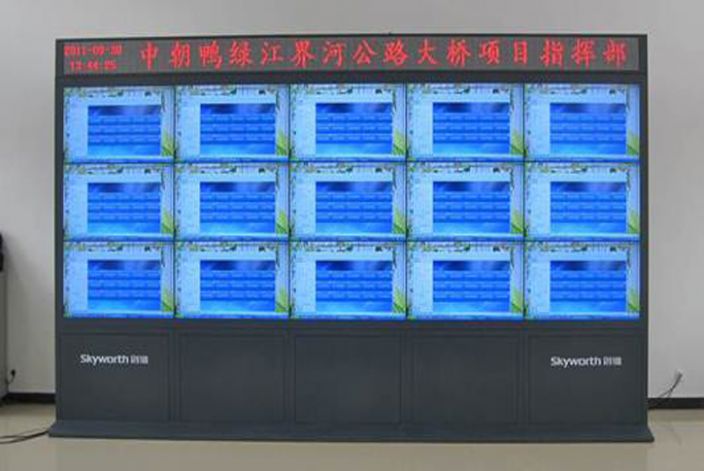 2011年9月中旬,丹東市中朝鴨綠江界公路大橋指揮部項目正式峻工并投入運營。創(chuàng)維群欣的46寸超窄邊液晶大屏拼接正式投入使用,承擔(dān)起了中朝邊界轄區(qū)道路安全監(jiān)控的重任。