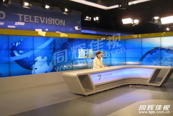 近日大連電視財經頻道演播室背景屏系統升級改造,以實現演播室背景畫面360度展示和電視臺要求播放的相關內容顯示。結合大連電臺的應用需求以及電視臺演播室的內部裝修設計,同輝佳視采用其代理的國際知名品牌NEC的工程液晶顯示器X462un進行12x3 L型拼接設計。