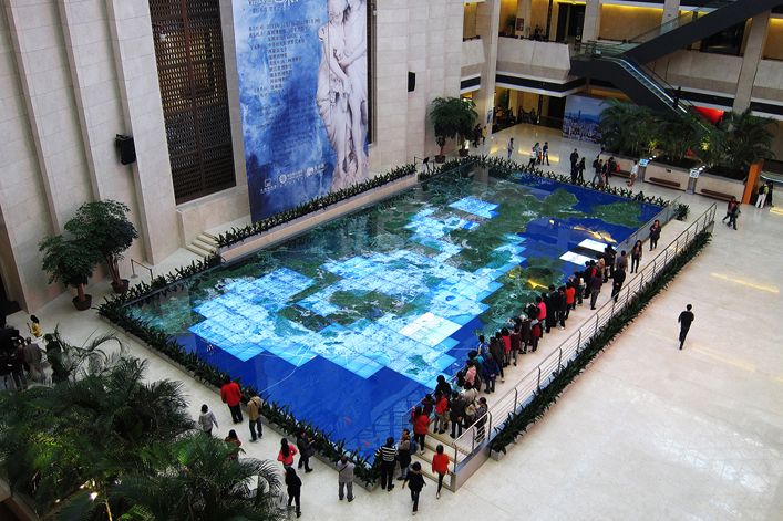 該項目由180塊46"LCD液晶拼接顯示屏和444塊燈箱屏組成,由數(shù)虎圖像、深圳大峽谷模型和創(chuàng)維群欣共同承建。