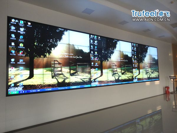 此項目前端由36臺TRUFEEL超窄邊液晶拼接屏TF-46S206進行4*9的拼接而成,并配有12U處理器主箱體,8路視頻輸入,16路VGA輸入,2路DVI輸入;36路RJ45千兆流媒體輸出的IP流拼接控制器,以此實現(xiàn)畫面的組合,迭加,漫游等多種功能。后端配有16進16出的視屏矩陣,用以對電力設備的實時監(jiān)控及信息發(fā)布。