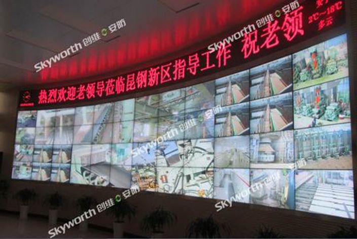 新落成的監控中心采用的是創維46寸高亮超窄邊拼接,指揮中心大廳4×12,指揮中心采用的是弧度安裝。兩個系統已承擔起監控整個草鋪廠區安全、作業情況的重任。