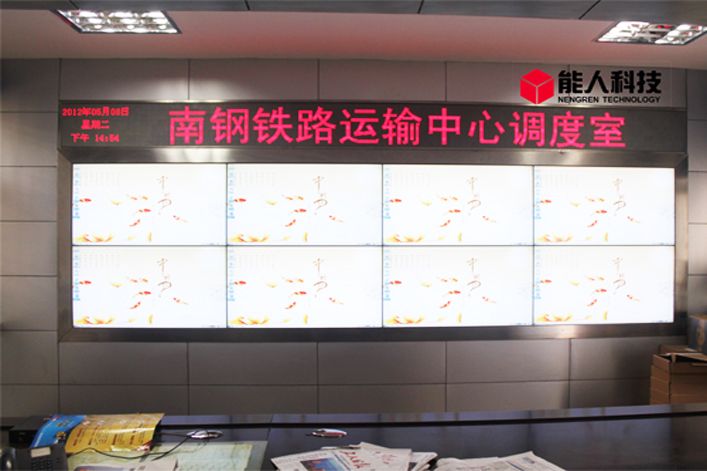 為達(dá)到南鋼鐵路運(yùn)輸調(diào)度中心的信息化建設(shè)要求,整個(gè)視頻墻采用8臺(tái)NEC超窄邊顯示器X462UNV進(jìn)2*4的拼接,同時(shí)配備一臺(tái)16路VGA輸入,8路DVI輸出的多功能處理器(可以實(shí)現(xiàn)信號(hào)實(shí)時(shí)在大屏幕上顯示,并且可以跨屏漫游疊加,可以網(wǎng)絡(luò)控制)。指揮中心的操作臺(tái)電腦直接選擇主機(jī)信號(hào)源信號(hào)上屏顯示,戶外的監(jiān)控系統(tǒng)經(jīng)過(guò)網(wǎng)絡(luò)監(jiān)管主機(jī)后接入大屏處理器,以實(shí)現(xiàn)實(shí)時(shí)監(jiān)控的功能。
