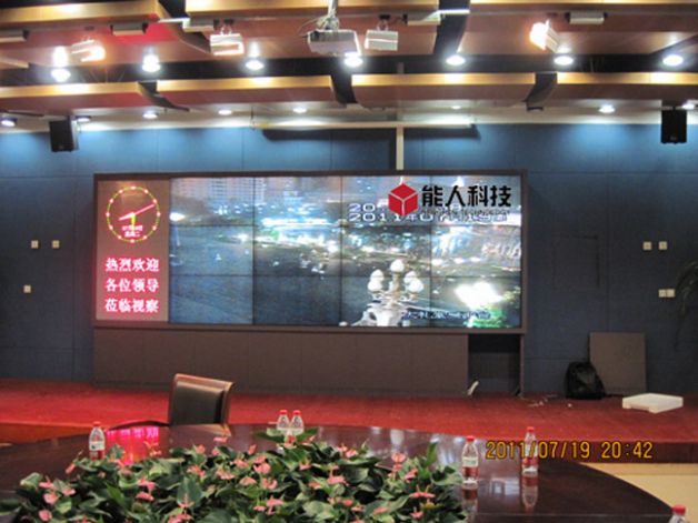 重慶公安局聯動中心LCD液晶拼接屏由廣州市能人計算機科技有限公司承建。 該LCD液晶拼接屏采用12臺NEC超窄邊LCD液晶拼接屏X462UN進行3*4的拼接,同時配備一臺4RGB、12Video輸入,12DVI輸出的多功能處理器(可以實現信號實時在大屏幕上顯示,并且可以跨屏漫游疊加,可以網絡控制),一臺12進12出的視頻矩陣,2個VGA分配器。指揮中心的操作臺電腦信號可以通過圖像處理器選擇需要的信號上屏顯示,戶外的監控系統經過光端機解碼后接入視頻矩陣,以實現實時監控的功能。大屏幕以清晰的視頻,以及準確的信息給指揮中心工作人員提供實時監控信息。系統以高亮度,高清晰度,絢麗的色彩和穩定的運行滿足了客戶的需求。