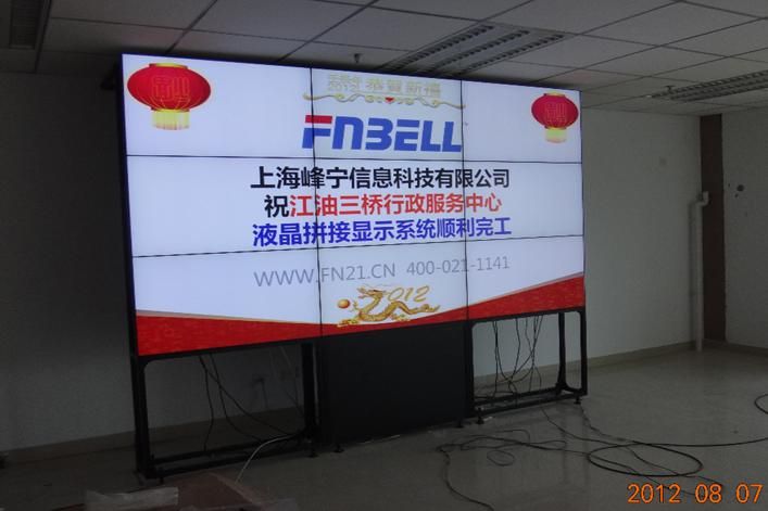 根據(jù)江油三橋行政服務(wù)中心的需要,峰寧科技為其設(shè)計(jì)了一組3*3的46寸超窄邊LED背光,5.9MM拼縫的高清液晶拼接系統(tǒng),峰寧液晶拼接屏專為 7*24小時(shí)的特殊環(huán)境而設(shè)計(jì)的大屏幕顯示系統(tǒng),可以更好的在拼接墻上清晰展示畫面,最大程度地減少觀看者的視覺盲點(diǎn)與視覺割裂感,為江油三橋行政服務(wù)中心錦上添花。