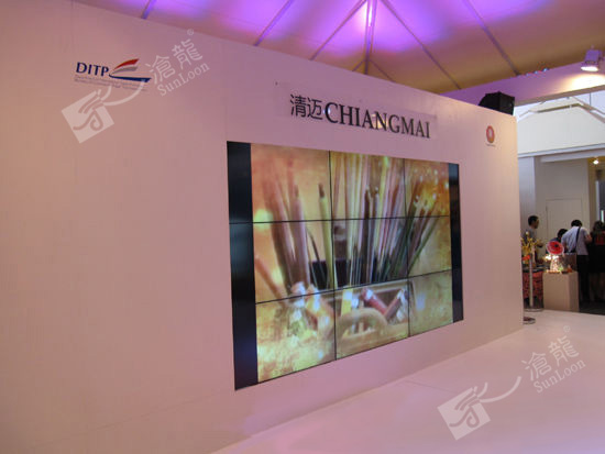 泰國清邁展區于2012年采用滄龍46寸超窄邊液晶拼接大屏,應用于該館的展會宣傳展示。