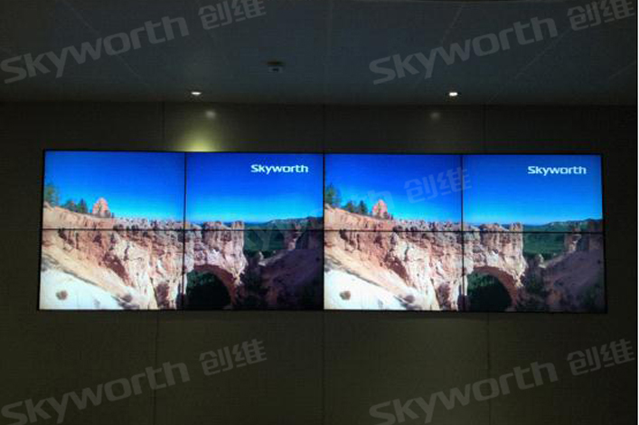 創維群欣憑借豐富的金融領域應用案例,優質的產品和良好的售后服務贏得了專家組與甲方客戶的一致好評,順利入圍。創維群欣本次提供了46寸2×4超窄邊液晶拼接系統,根據用戶的實際場地,采用了前維護的安裝方式。