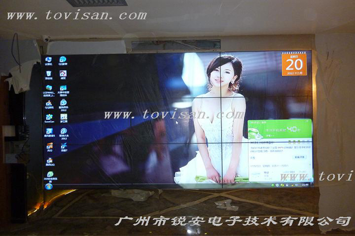 廣州市銳安電子有限公司根據場地的具體規劃,結合現場的安裝環境和布局,最終選擇了銳安三星46寸超窄邊液晶拼接屏共9臺,組合成3×3大幅面液晶拼接墻。該液晶顯示器采用工業級面板,性能穩定,支持7*24小時開機,擁有超窄的邊框,適合現場隨時隨地播放會議內容。