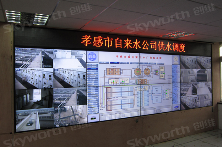 孝感市八一水廠是湖北省孝感孝南區(qū)新建的一座水廠,設計日供水300,000立方米,占地面積約為96000平方米,主要供主城區(qū)、臨空經(jīng)濟區(qū)、生態(tài)臨空經(jīng)濟區(qū)、生態(tài)旅游開發(fā)區(qū)以及其他產(chǎn)業(yè)園。近期,創(chuàng)維群欣液晶拼接系統(tǒng)進駐孝感市自來水廠,承擔水廠調度監(jiān)控顯示重任。