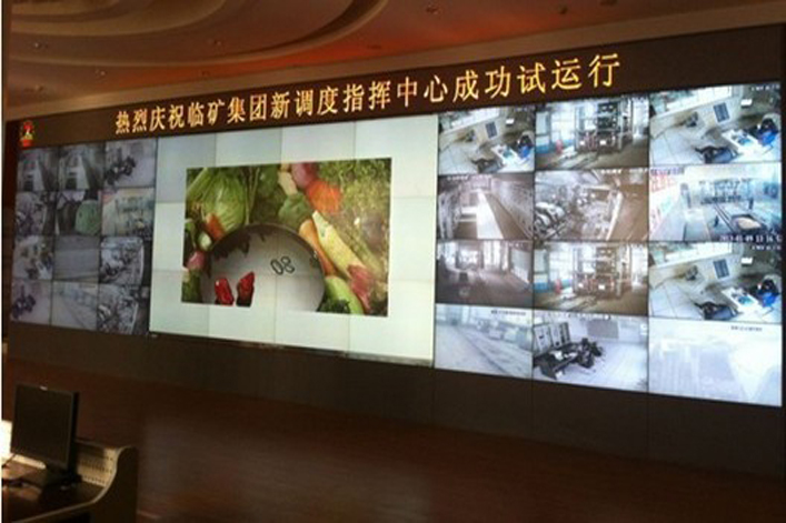 根據用戶需求,巨洋為用戶大屏幕兩側各安裝3*4 55英寸LCD拼接顯示屏,作為輔助顯示系統。臨礦集團調度中心大屏幕系統利用礦井監控系統和先進的光纖聯絡方式,實現礦業集團及下屬企業聯網管理和礦區監控中心控制管理,從而實現對轄區煤礦的遠程瓦斯監測分析、越界開采監督、瓦斯隱患查詢、通風狀態查詢和安全調度管理;能夠及時并且非常直觀地得到煤礦安全與生產信息,便于監察管理,實現在中心控制室內,通過數字拼接墻,高清晰度、高對比度地顯示遠程實時監測聯網礦點的瓦斯情況。鎖定采掘工程圖狀態,并提供安全功能,調看相鄰煤礦的采掘工程圖,查看和測量距離,調看歷史圖對比分析等等,為解決越界開采和貫通安全問題提供了有效的技術手段。