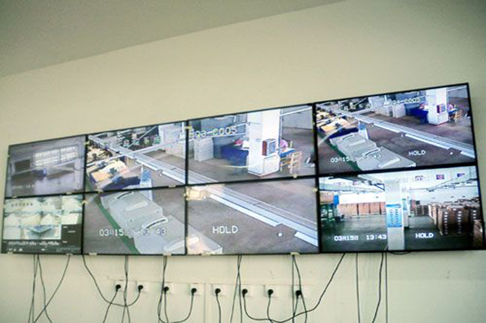 LANETCO在河南某公司監控中心液晶拼接屏顯示系統工程中向該公司提供了一套2*4 的40寸22mm拼縫液晶拼接屏,主要用于監控公司生產車間的安全狀況,可以將監控視頻圖像信息完全實時顯示到監控屏幕上,由于假發屬于易燃物范圍,因此,生產監控對于公司的安防工作來說顯得尤其重要。