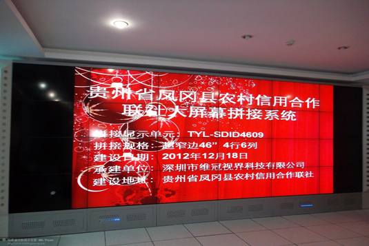 貴州鳳岡縣農村合作信用社液晶拼接系統,采用特雅麗46寸4*6方式拼接,顯示效果清晰。