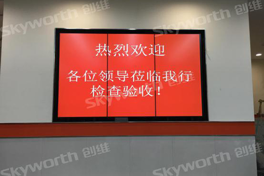 此次項目采用的55英寸1×3商用液晶拼接,采用了原裝進口工業級超窄邊液晶面板,超薄墻體嵌入式設計,采用新穎的豎向拼接方式,滿足客戶標新立異的風格,為營業網點的顧客提供最全面的金融信息服務。