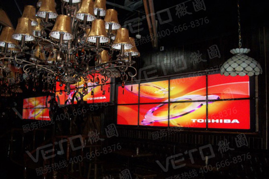 山東諸城蘇荷酒吧液晶拼接墻采用46寸、2x4規格。