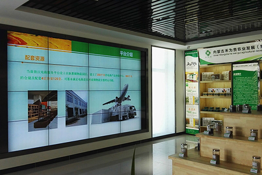 敖漢電商平臺此次采用LG 47寸原裝超窄邊4.9mm拼縫液晶拼接屏16臺4X4組合拼接形式,1080pHDMI信號完美傳輸,全屏展示清晰度高,廣視角、超清晰是此系統的一大亮點!