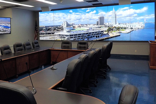 莫比爾市警察局聯合作戰中心(JOC )內的視頻墻由一塊 3x6 陣列的科視 Christie FHD552-X 55 英寸窄框 LCD面板和 11個科視Christie Phoenix信息管理系統節點組成。