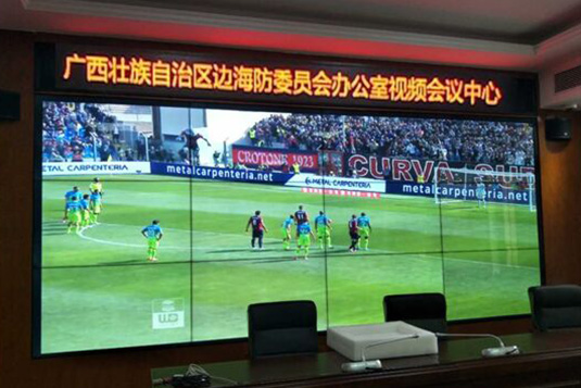由TCL提供的液晶大屏幕顯示系統,安裝于廣西邊海防委員會辦公室視頻會議中心,使用了12片3*4,55寸1.8mm超窄邊拼縫LCD拼接屏,嵌入式幕墻安裝并顯示多路視頻監控信號、政務管理的業務信號,電腦信號等。該系統使用了目前最窄拼縫的LCD產品,給用戶帶來了超乎無縫體驗,同時搭載了三大畫質處理技術,該技術由TCL自主研發,具有核心知識產權,不僅能保證整個液晶拼接墻亮度一致性、顏色一致性,同時能保證業務信號、電腦信號呈現的準確性和細膩度,這正是廣西邊海防委員會視頻辦公室會議中心所需的顯示效果,也是整個指揮調度系統的點睛之筆。