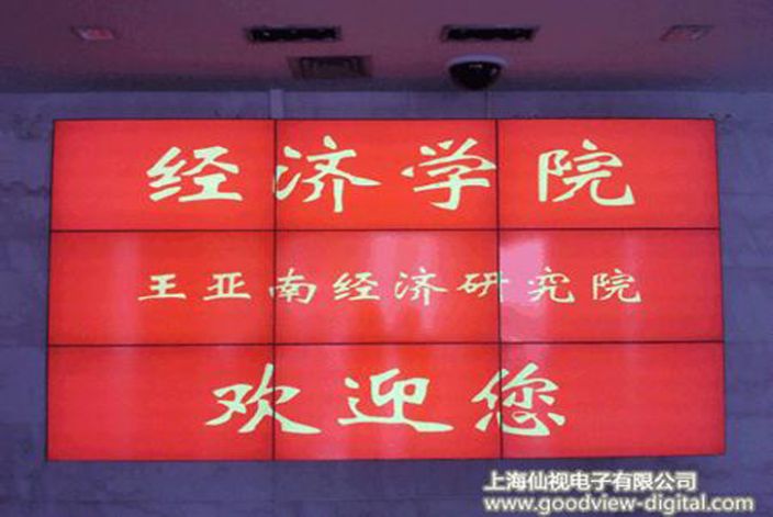 廈門大學(xué)王亞南經(jīng)濟研究院LCD液晶拼接屏采用的是上海仙視電子有限公司液晶拼接PD46N4型號產(chǎn)品,共9臺,該LCD液晶拼接屏產(chǎn)品非顯示區(qū)域之間拼縫僅為7.3mm,使用壽命可達50000小時,超寬視覺延展技術(shù) (S-PVA)保證圖像顯示不變形,無失真。快速反應(yīng)識別技術(shù)確保播放高速視頻。通過RS232串口實現(xiàn)遙控功能。具有3D梳狀濾波器,動態(tài)降噪技術(shù)。定時開關(guān)機、智能內(nèi)部控溫、同時也具有178度寬大視角等眾多的強大功能,特別是它獨特的模塊化設(shè)計,既可以拼接作為液晶拼接墻,也可以單獨使用。