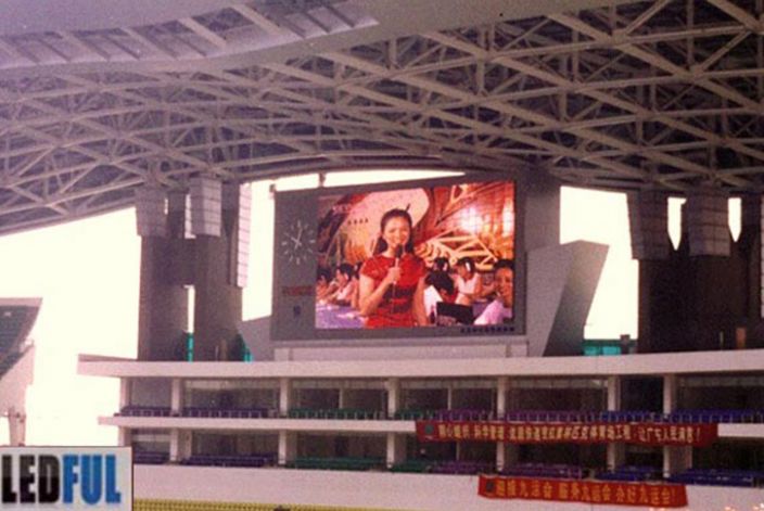 廣東體育場戶外全彩LED顯示屏大屏幕顯示系統(tǒng)由國內(nèi)著名的LED顯示屏生產(chǎn)廠家——深圳盛燁光電有限公司承建。該戶外全彩LED顯示屏系統(tǒng)采用了P25規(guī)格,LED顯示屏面積144平米,成為該球場體育賽事現(xiàn)場播報的重要平臺,是戶外全彩LED顯示屏在體育場應用的一個經(jīng)典工程案例。