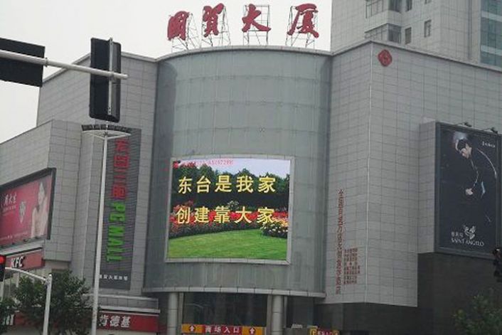 江蘇東臺國貿(mào)大廈戶外LED顯示屏大屏幕顯示系統(tǒng)由上海聯(lián)創(chuàng)健和光電科技有限公司承建。該戶外全彩LED顯示屏廣告?zhèn)髅较到y(tǒng)采用了P16規(guī)格,LED顯示屏面積66.06平米,采用高亮CREE燈,系統(tǒng)采用節(jié)能型,戶外全彩LED顯示屏在廣告?zhèn)髅綉?yīng)用的一個典型工程案例。