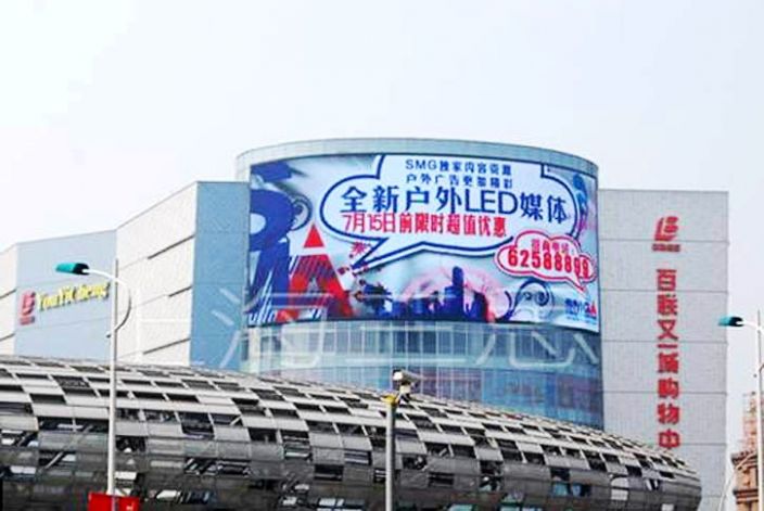 上海五角場百聯又一城購物中心戶外全彩LED顯示屏大屏幕顯示系統由上海三思科技發展有限公司承建。該戶外全彩LED顯示屏系統能充分滿足百聯又一城購物中心戶外廣告傳媒的需要,是戶外全彩LED顯示屏在廣告傳媒應用的一個經典工程案例。