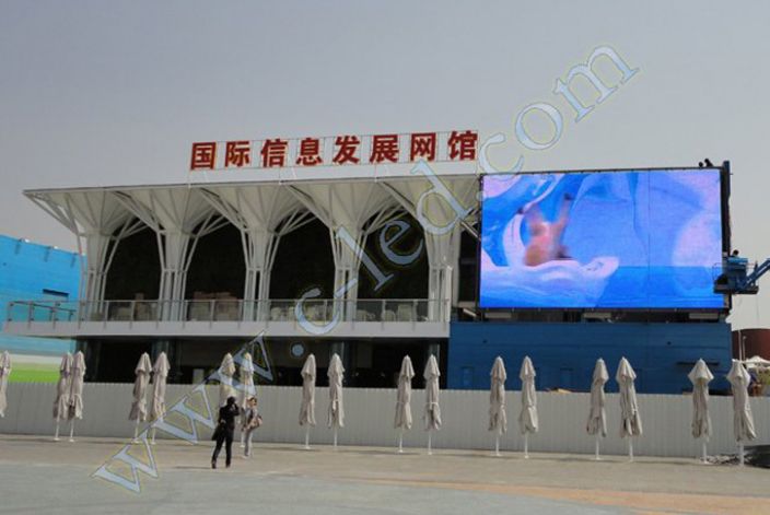 “世博會國際發展信息館戶外全彩LED顯示屏大屏幕顯示系統”由“北京彩易達科技發展有限公司”承建。該戶外全彩LED顯示屏系統采用了PH16規格,LED顯示屏面積300㎡,戶外全彩LED顯示屏應用的一個典型工程案例。