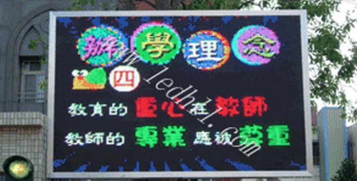 臺灣名誠中學戶外全彩LED顯示屏大屏幕顯示系統由國際著名的LED顯示屏生產廠家——深圳市合利來科技有限公司承建。該戶外全彩LED顯示屏廣告傳媒系統采用了P20規格,LED顯示屏面積54.5平米,能夠充分滿足臺灣名誠中學的需要,是戶外全彩LED顯示屏在教育行業應用的一個經典工程案例。
