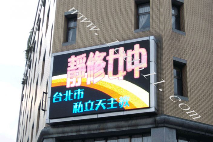 臺灣臺北市天主教堂戶外全彩LED顯示屏大屏幕顯示系統由國際著名的LED顯示屏生產廠家——深圳市合利來科技有限公司承建。該戶外全彩LED顯示屏系統采用了P20規格,LED顯示屏面積13.8平米,能夠充分滿足臺北市天主教堂的需要,是戶外全彩LED顯示屏在宗教場所應用的一個經典工程案例。