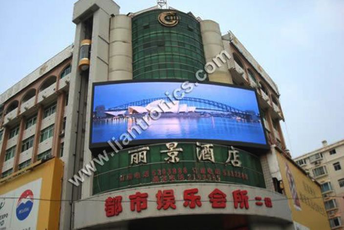 廣西南寧市麗景酒店戶外全彩弧形LED顯示屏采用的是規(guī)格為PH16mm的室外全彩LED顯示屏,屏體面積為100.66平方米,配備了高端的諾瓦控制系統(tǒng),并帶有色亮度逐點(diǎn)校正功能,其絢爛的色彩,流暢的畫(huà)面,高清的效果,為南寧市增色不少。此項(xiàng)目是我司在廣西南寧市樹(shù)立的一個(gè)樣板工程。這塊弧形LED顯示屏鑲嵌在麗景酒店的樓面上,麗景酒店是又位于雙擁路和青山路的交匯處,每天車流,人流量相當(dāng)大。