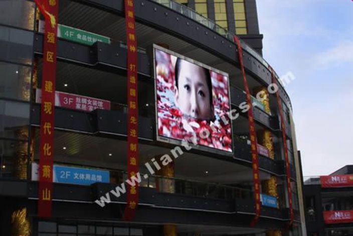 杭州星光大道大型商場戶外全彩LED顯示屏大屏幕顯示系統安裝地點:杭州市濱江區星光大道C區大型商場大樓外,屏幕規格;PH16MM,屏幕面積:50.33平方米。