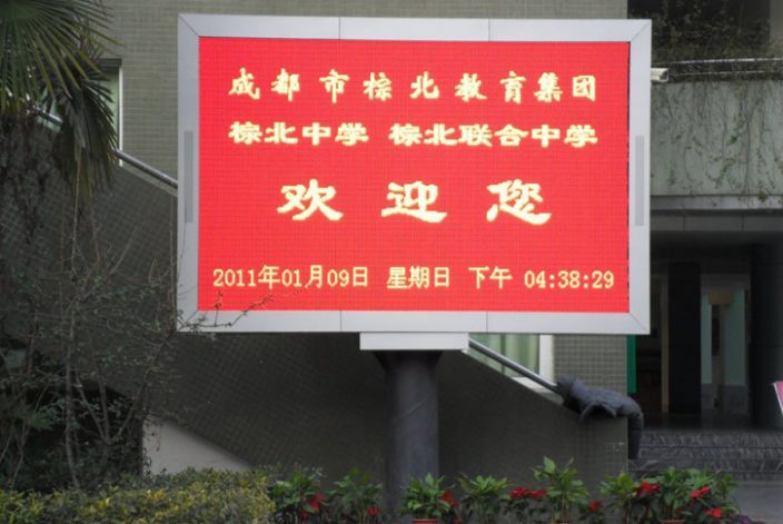 四川省成都市棕北聯合中學戶外全彩LED顯示屏大屏幕顯示系統由國內著名的LED顯示屏生產廠家——創維光電科技(深圳)有限公司承建。該戶外全彩LED顯示屏系統采用了P10規格,LED顯示屏面積5.8平米,能夠充分滿足成都市棕北聯合中學的需要,是戶外全彩LED顯示屏在教育行業應用的又一工程案例。