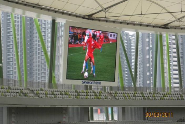 廣東省深圳市寶安體育場戶外全彩LED顯示屏大屏幕顯示系統由國內著名的LED顯示屏生產廠家——創維光電科技(深圳)有限公司承建。該戶外全彩LED顯示屏系統采用了P16規格,LED顯示屏面積103.809㎡*2=207.618平米,是戶外全彩LED顯示屏在體育場應用的一個經典工程案例。
