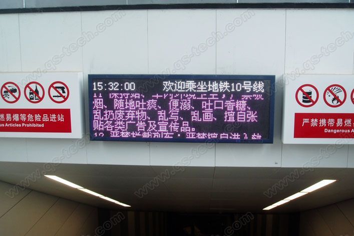 北京地鐵奧運支線軌道交通誘導LED顯示屏系統由青松科技承建。該室內全彩軌道交通誘導LED顯示屏采用了P8規格,面積0.78平米96塊,面積 0.39平米108塊,合計204塊,LED顯示屏總面積達117平米,能夠充分滿足北京地鐵奧運支線軌道交通信息發布的需要,是室內軌道交通誘導全彩 LED顯示屏在地鐵軌道應用的一個經典工程案例。
