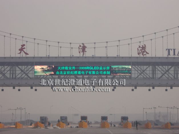 天津津南區高速路口戶外全彩LED顯示屏大屏幕顯示系統由北京世紀澄通電子有限公司承建。該戶外全彩LED顯示屏信息發布系統采用了P25規格,日亞管芯,LED顯示屏面積56平米,能夠充分滿足天津津南區高速路信息發布的需要,是戶外全彩LED顯示屏在政府機關信息發布應用的一個工程案例。