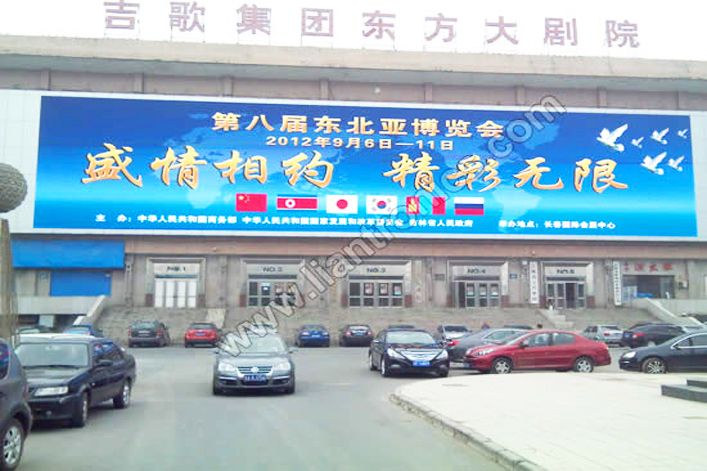 聯建光電434平方米LED顯示屏呈現吉歌集團東方大劇院靚麗風景。該LED顯示屏規格為PH16mm,總面積超434m2,宛如一條緞帶鑲嵌在這棟古老又不失優雅的建筑物上,為東方大劇院增添了一抹現代科技的色彩。該屏采用的是聯建光電高品質燈管,亮度高,色彩鮮艷。無論是白天還是黑夜,這塊絢麗多彩的LED顯示屏都格外引人注目。