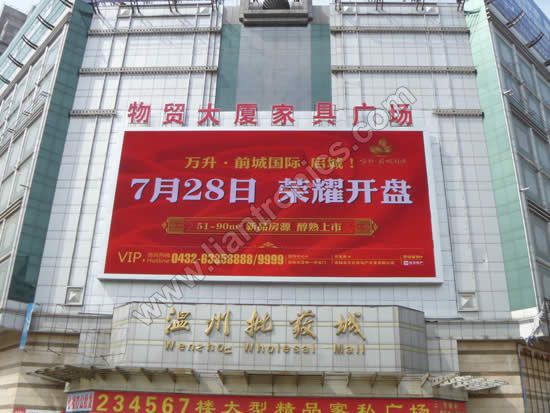 溫州批發(fā)城是吉林市知名的綜合市場(chǎng),經(jīng)營(yíng)項(xiàng)目包括陶瓷潔具、石材油漆、燈具家具、木業(yè)制品、移門櫥柜等,消費(fèi)者諸多;而本項(xiàng)目LED顯示屏安裝于溫州批發(fā)城物貿(mào)大廈家居廣場(chǎng)正門上方的幕墻,正對(duì)車來人往的街道,受眾接觸率極高,無疑是各大商家投放廣告的最佳平臺(tái)。