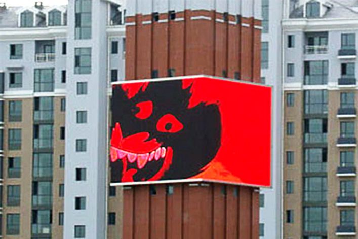 內蒙東勝薛家灣銀鉆廣場的大樓上亮出了一面面積為:137.04平方米的全彩16mm顯示屏(三面屏相連),此屏采用了簡易箱體及我司工程師為此安裝環境特別設計的直角箱體相結合以及對角上模組所采取的特殊處理的方法,使三面屏畫面連貫,絢麗的色彩,靈動的畫面,顯示屏的安裝立刻使銀鉆廣場生動起來,吸引了路過的行人的駐足圍觀。