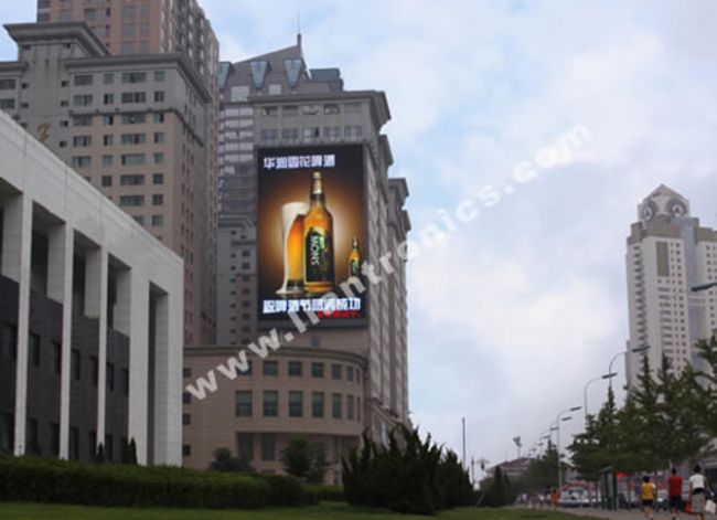 這是聯建在大連樹立的一個典型高端顯示屏樣板工程,整個項目包括兩塊LED顯示屏,規格為PH25戶外全彩,均安裝在大連市沙河口區星海廣場,總面積達526平方米。圖中的LED顯示屏高25.6米,寬15.6米,節能效果十分顯著,每年至少可為客戶節電56萬度。