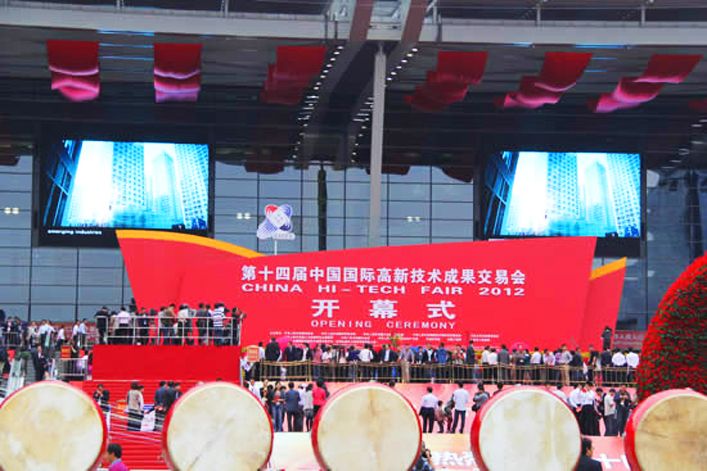 “第十四屆中國(guó)國(guó)際高新技術(shù)成果交易會(huì)開(kāi)幕!”2012年11月16日上午9時(shí),隨著全國(guó)人大常委會(huì)副委員長(zhǎng)路甬祥高聲宣布,伴隨著莊嚴(yán)的國(guó)歌,深圳會(huì)展中心外鼓聲齊鳴,禮花飛舞,有著“中國(guó)科技第一展”之稱(chēng)的高交會(huì)又一次在深圳隆重舉行。 本次開(kāi)幕式是在深圳會(huì)展中心外面廣場(chǎng)舉行,我司提供的三塊高清LED顯示屏分別安裝在廳主席臺(tái)正對(duì)面和兩側(cè),用作交替或同時(shí)播放高交會(huì)開(kāi)幕式現(xiàn)場(chǎng)實(shí)況、歷屆高交會(huì)和深圳發(fā)展歷史影片。其中安裝在主席臺(tái)正對(duì)面的PH16mm高端節(jié)能戶(hù)外LED顯示屏,同時(shí)直播高交會(huì)開(kāi)幕式的3個(gè)不同的節(jié)目信號(hào),面積達(dá)700平方米,是迄今為止高交會(huì)上使用的面積如此巨大的全彩LED顯示屏。而固定安裝在主席臺(tái)兩側(cè)的LED顯示屏是聯(lián)建光電高端節(jié)能屏,規(guī)格為貼片PH12mm,面積均為100平方米。這些屏幕畫(huà)面清晰,色彩鮮明,圖像細(xì)膩逼真,播放穩(wěn)定流暢,超大面積帶來(lái)的視覺(jué)享受贏(yíng)得了在場(chǎng)眾人的贊嘆。