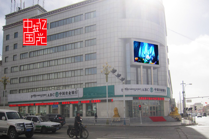 戶外led顯示屏已成為一種廣受大眾接受和歡迎的信息傳播媒體工具。不僅僅是在廣告宣傳和信息傳播方面,美化城市環(huán)境,提升都市品位等一些方面的作用也是顯而易見(jiàn),LED顯示屏成為都市里一種不可缺少的都市元素之一。“圣地”拉薩布達(dá)拉宮的周邊,這一都市元素正悄然興起。繼拉薩市中國(guó)郵政大廈外墻弧形戶外LED全彩屏成功點(diǎn)亮后,深圳億光的又一布達(dá)拉宮周邊的精品LED顯示屏項(xiàng)目隆重登場(chǎng)—中國(guó)農(nóng)業(yè)銀行拉薩分行大廈外墻P10戶外全彩LED顯示屏項(xiàng)目圓滿完工。 從深圳億光營(yíng)銷(xiāo)中心獲悉,此塊LED顯示屏面積為73.728平米,型號(hào)選用的是PH10。屏體安裝于拉薩布達(dá)拉宮正對(duì)面的中國(guó)農(nóng)業(yè)銀行拉薩分行大廈正門(mén)外墻上方,采用的是壁掛加立柱的方式安裝,整體結(jié)構(gòu)牢固美觀,屏體安裝結(jié)構(gòu)設(shè)計(jì)充分考慮了屏體維護(hù),市民觀看視角等多方面的因素,使得LED屏以最完美的姿態(tài)呈現(xiàn)在市民面前。