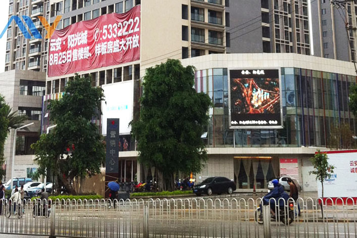 云南云安陽光城樓盤采用戶外P10全彩led顯示屏,3塊led大屏總面積174.18㎡,單塊面積為長8.64m*高6.72m/。云安集團公司為了迎接樓盤開業想在陽光城樓盤前面增加一道光彩、決定安裝一款全彩led顯示屏,云安集團領導團隊先后聯系并考察了深圳幾大led顯示屏生產廠家,邁揚科技在競爭最激烈的情況下使出殺手锏,推薦我司無排線專利產品戶外P10全彩led顯示屏。邁揚科技最終以強大的技術,完善的售前售后服務在幾家大公司面前脫穎而出,云安集團最后決定采用我司無排線系列產品,并給予我司高度評價。