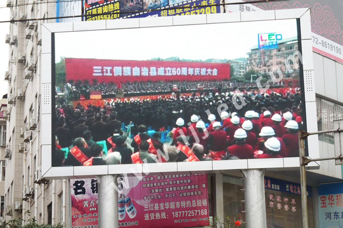廣西柳州三江飯店戶外全彩LED顯示屏亮金晶光電
