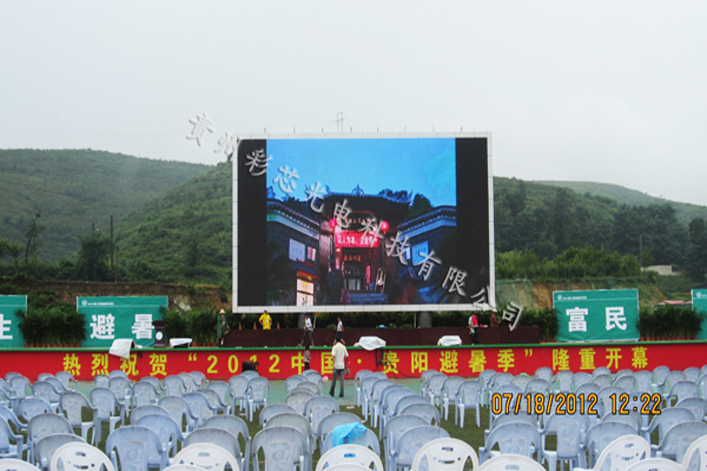 貴州彩芯光電科技有限公司 151平方P16全彩顯示屏陪你走進2012中國·貴陽避暑季開幕式暨貴陽市第六屆旅游產業發展大會。 開幕式在位于息烽集中營革命歷史紀念館旁的息烽國際汽車露營地舉行。