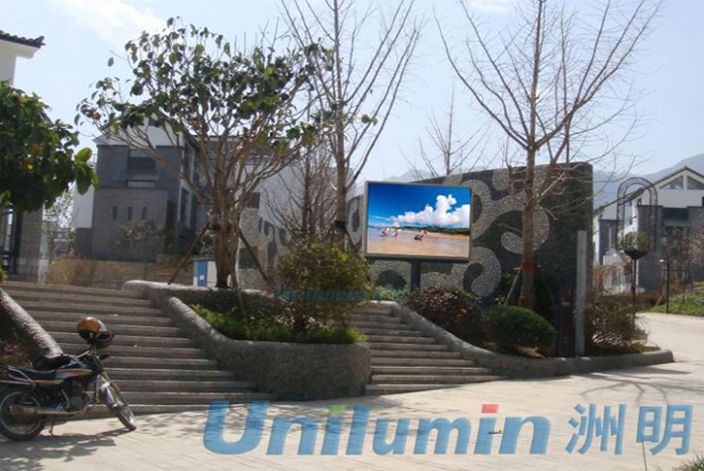 云南大理山水間別墅區LED顯示屏由深圳市洲明科技股份有限公司承建。該戶外全彩LED顯示屏信息發布系統采用了P12規格,士蘭管芯,面積15平米,成為云南大理山水間別墅區信息發布的重要平臺,是戶外全彩LED顯示屏在廣告傳媒信息發布應用的一個工程案例。