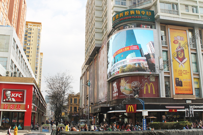 2012年12月在昆明金碧輝煌購(gòu)物廣場(chǎng)成功安裝的戶(hù)外弧形表貼顯示屏由神州科鷹承制,該戶(hù)外弧形全彩LED顯示屏采用最新表貼技術(shù),規(guī)格為:KING-SMD PH10;該屏作為“金碧之窗”每天匯聚數(shù)十萬(wàn)目光焦點(diǎn),其絢麗的色彩和弧形的顯示畫(huà)面吸引不少路人駐足觀看。