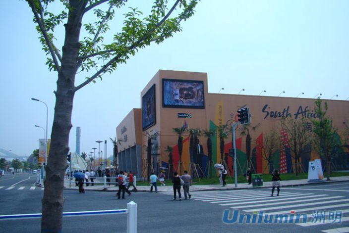 上海世博園區南非館戶外全彩LED顯示屏由深圳市洲明科技股份有限公司承建。該戶外全彩LED顯示屏-信息發布系統能滿足上海世博園區南非館信息發布的需要,是戶外全彩LED顯示屏在博覽展覽信息發布應用又一工程案例。