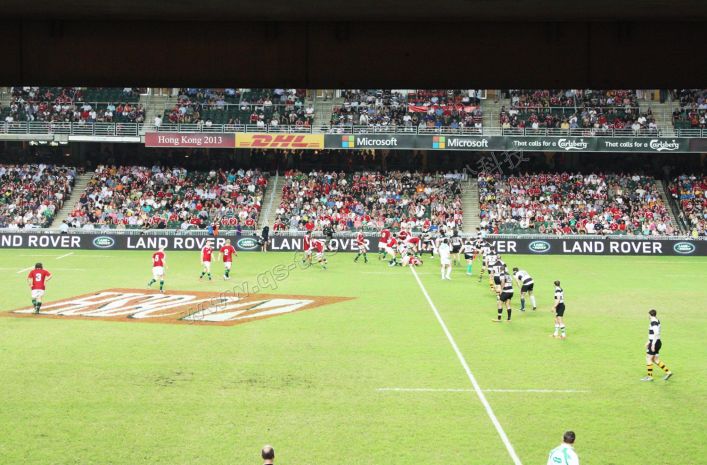 香港體育館戶外球場全彩LED顯示屏系統由青松科技承建。該項目全彩LED顯示屏采用了P20規格,LED顯示屏總面積達98平米,能夠充分滿足香港體育館體育競賽信息發布的需要,是戶外全彩LED顯示屏在體育場館應用的一個經典工程案例。圖展示的是英式橄欖球比賽中應用該全彩顯示屏播放賽事信息。