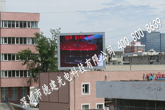 經過深圳市德建光電科技有限公司資深工程技術人員到蒙古國NEW MIND LLC公司現場指導安裝調試,我公司生產的P10戶外全彩LED顯示屏于2013年6月8日在紅色英雄城-烏蘭巴托順利點亮。