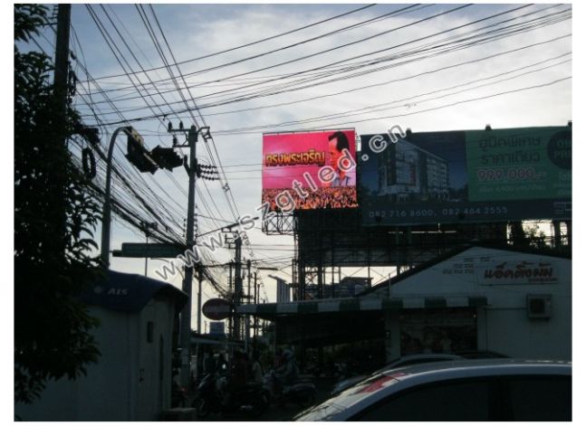泰國羅勇市,一塊來自深圳市顧通科技有限公司的P16戶外全彩LED顯示屏正式點亮。該LED顯示屏面積為24平米。
